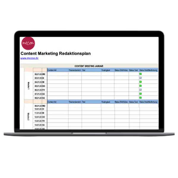 Nutze gerne unsere Produkte. Lade dir unsere kostenlose Redaktionsplan-Vorlage herunter und starte direkt mit der Planung deiner Inhalte auf Instagram.