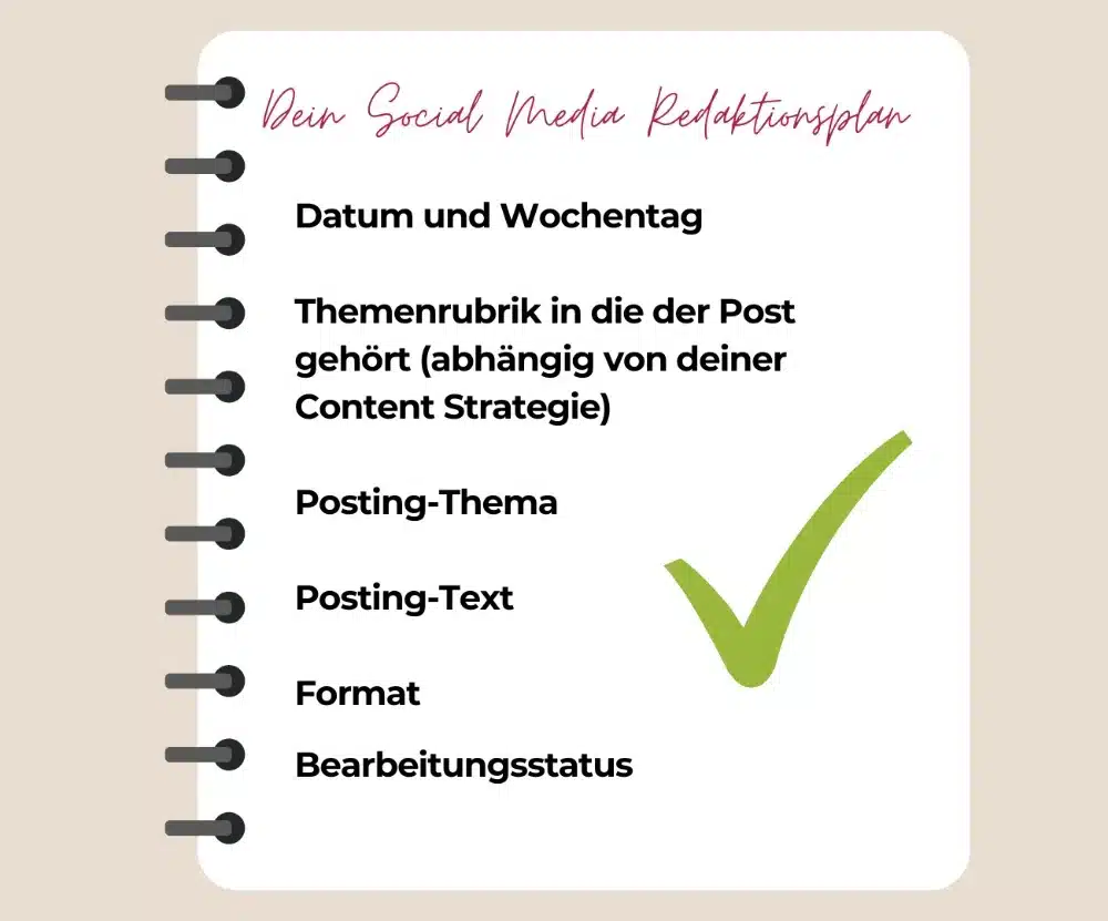 Die folgenden Punkte sollten allerdings in jedem Social-Media-Redaktionsplan bzw. Redaktionskalender enthalten sein: