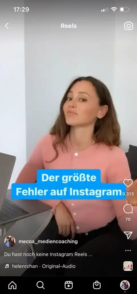 User erhalten diesen unterhaltsamen, aber auch lehrreichen Content im Full Screen Format 9:16. Reels sollten wirklich immer als Full-Screen Content. gedacht werden.