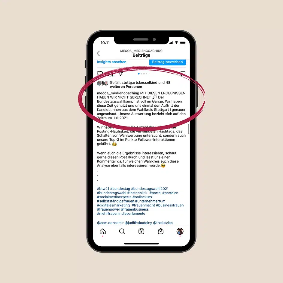Wenn du dich jetzt fragst wie das gehen soll, dann haben wir eine praktische Idee für dich. Beispielsweise teilst du mit deiner Community einen Beitrag über deine Ziele in der Politik. Du erzählst über wichtige Aspekte in deinem Wahlprogramm, aber verrätst nicht alles, sondern stellst einen Link in deine Bio hinein, der zu deinem kompletten Wahlprogramm auf deiner eigenen Homepage führt. Dadurch generierst du nicht nur „Traffic“, sondern die LeserInnen, welche deinen Beitrag lesen gelangen direkt auf deine eigene Seite und können dort mehr über dich, deine Ideen, Strategien und Ziele erfahren. So erstellst du Content mit Mehrwert, der sich für dich und deine Community lohnt!