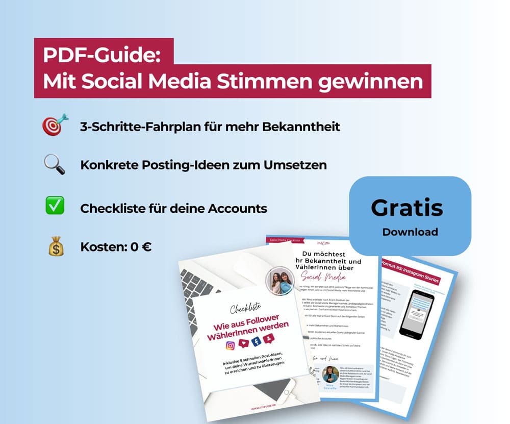 Du möchtest noch mehr über Social Media lernen und erfahren, wie du die sozialen Netzwerke als Politikerin vollständig ausschöpfen kannst? Du strebst nach der größtmöglichen Reichweite, um noch mehr Stimmen zu gewinnen? Dann lade dir jetzt unser brandneues Intensiv-Video-Training für Social Media herunter.
