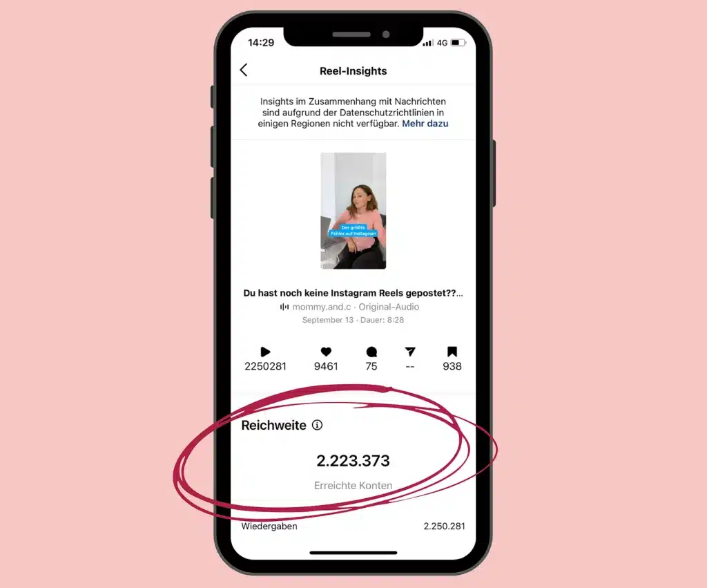 Um dir zu zeigen, dass virale Reichweiten mit Reels wirklich möglich sind, findest du unten einen Screenshot eines unserer Reels. Wir haben sage und schreibe 2,2 Mio. Menschen auf Instagram erreicht und innerhalb weniger Tage mehr als 1.000 Follower generiert. Und das alles Dank Reels! Und das schaffst du auch!