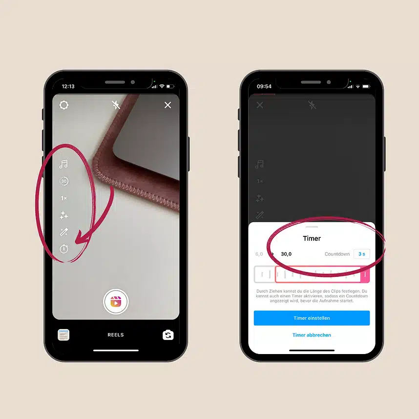 Timer und Countdown: Ein Instagram Reels zu erstellen kann ganz schön aufwendig und kompliziert sein – vor allem, wenn man es ohne Hilfe dreht. Aber Instagram erleichtert dir das Instagram Reels erstellen einwenig. Denn mit dem Timer kannst du auf der App einstellen, dass die Aufnahme automatisch losgeht und du keine weitere Person benötigst, um dein Instagram Reel aufzunehmen.