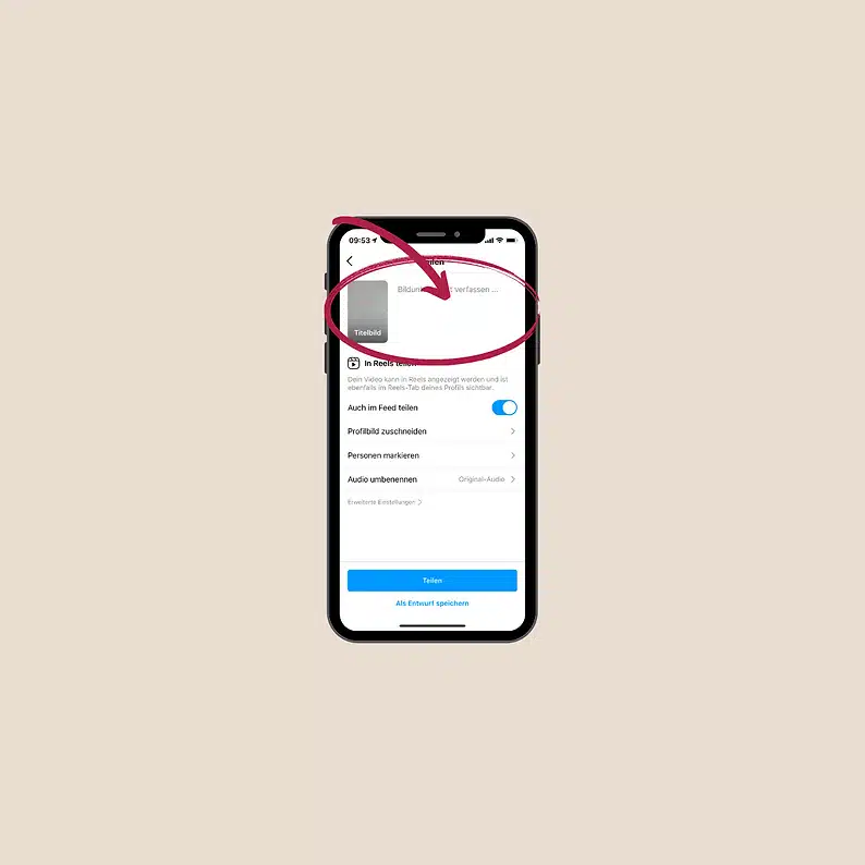6.Nachdem du mit allen Bearbeitungsschritten durch bist, geht es ans veröffentlichen deines Reels. Hierfür musst du noch zwei weiter Dinge beachten.