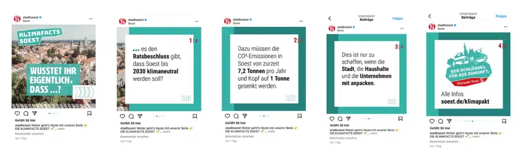 Ein gutes Beispiel beim Thema Social Media für Kommunen ist die Stadt Fellbach, eine unserer Kunden. Über mehrere Monate hinweg haben wir in zahlreichen Coachings gemeinsam mit dem Social-Media-Team Strategien und Prozesse entwickelt, wie die Interaktion mit den Bürgern und Bürgerinnen vor Ort durch eine fundierte Zielgruppenanalyse und entsprechenden Content intensiviert werden kann. Seit Beginn der Zusammenarbeit ist die Reichweite der Stadt auf Instagram, dank der daraus entstehenden Social Media Strategie, stark gewachsen.
