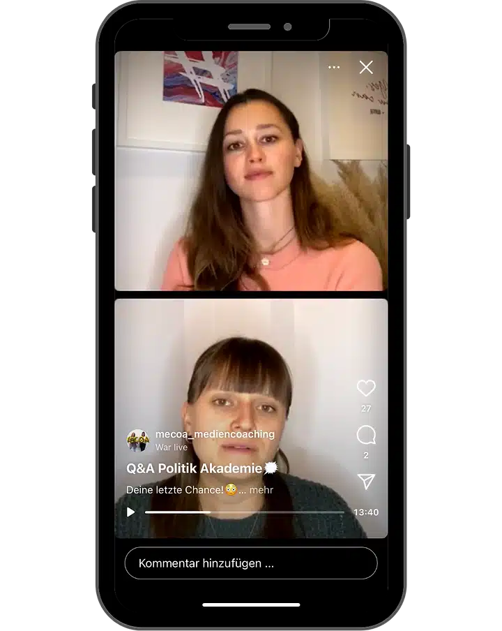 Tipp: Kündige den Livestream vorab in deiner Story an und sammle Fragen der Community.