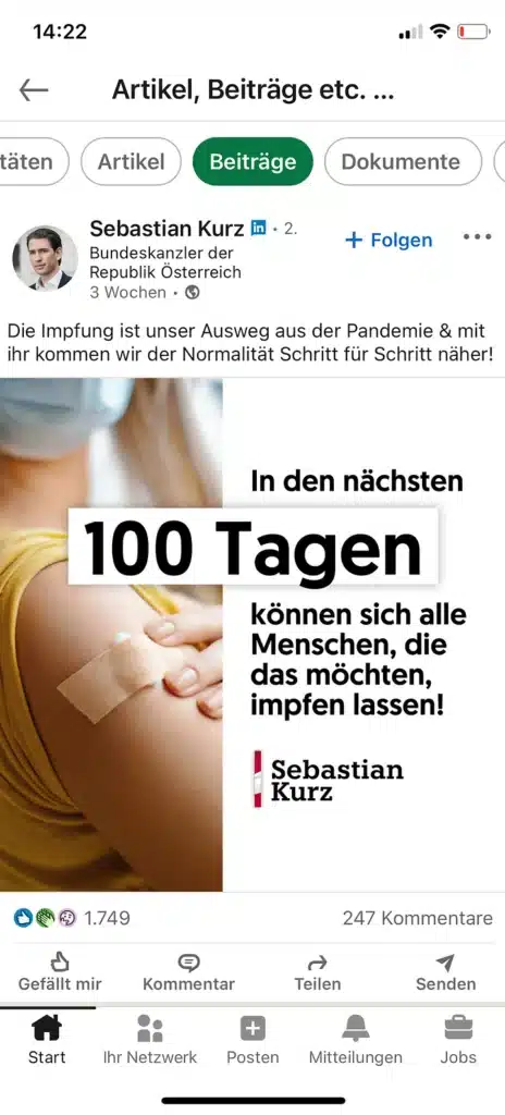 Sebastian Kurz auf LinkedIn