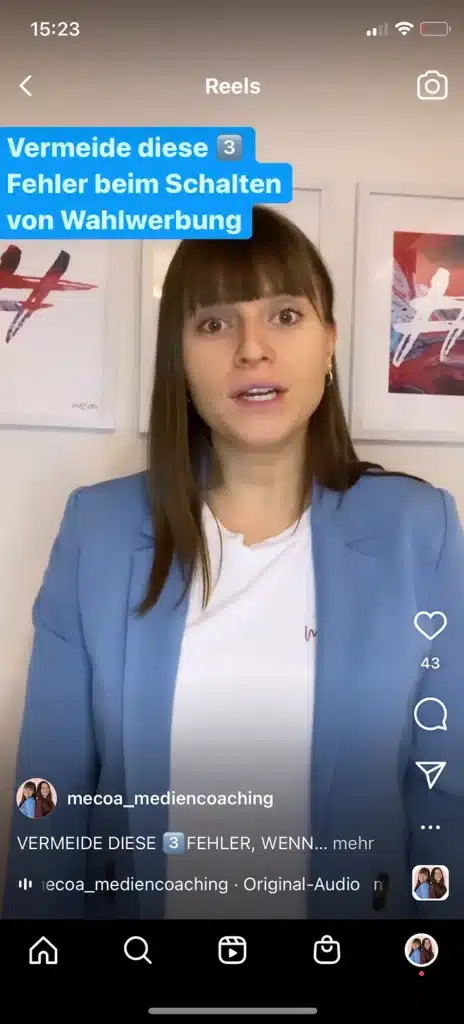 - Nutze unbedingt den Werbeanzeigenmanager für politische Werbung. Viele Personen machen den Fehler, dass sie ihre Beiträge direkt über den Button „Beitrag bewerben“ rechts unter dem Instagram oder Facebook Post bewerben. Das hat zur Folge, dass deine Werbeanzeigen tendenziell teurer sind und ungenauer ausgespielt werden, da du nicht so viele Zielgruppenkriterien hinterlegen kannst, wie im umfangreichen Facebook Werbeanzeigenmanager.