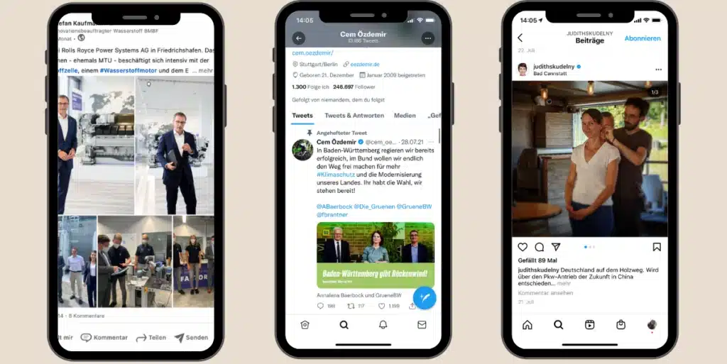 Auf Twitter kam der erfolgreichste Post von Cem Özdemir. Auf dem Beitrag, ist er selbst mit Annalena Baerbock und einem weiteren grünen Politiker zu sehen . In seinem kurzen Text spricht er vom Klimaschutz und der Modernisierung der Stadt Stuttgart. Seinen Post versieht er noch mit den wichtigsten Hashtags für die Bundestagswahl 2021.
